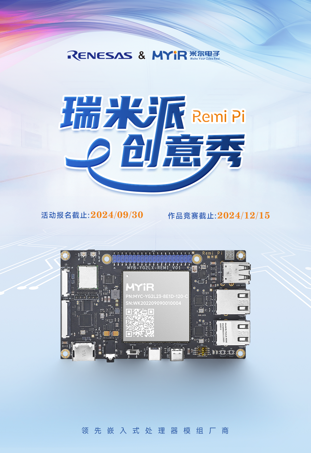 为鼓励工程师勇于创新探索的精神,提升实践动手能力,更深度的体验瑞米派产品,九游老哥J9俱乐部官网电子联合瑞萨共同发起“九游老哥J9俱乐部官网电子&瑞萨 瑞米派创意秀”,提供瑞米派支持开发者创新应用。